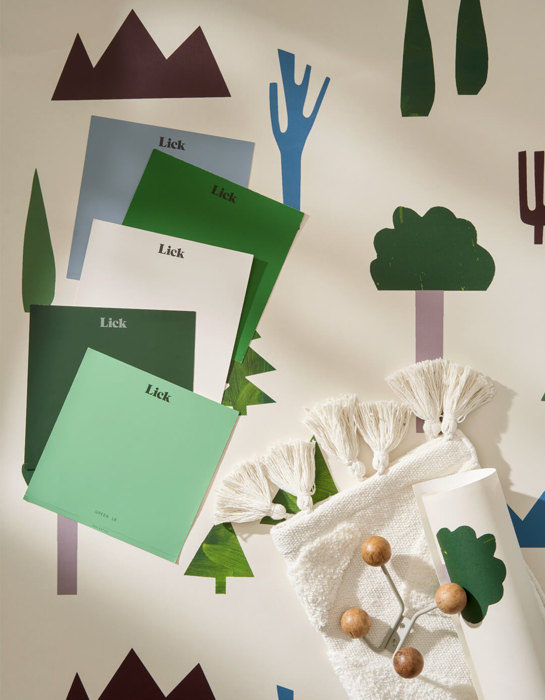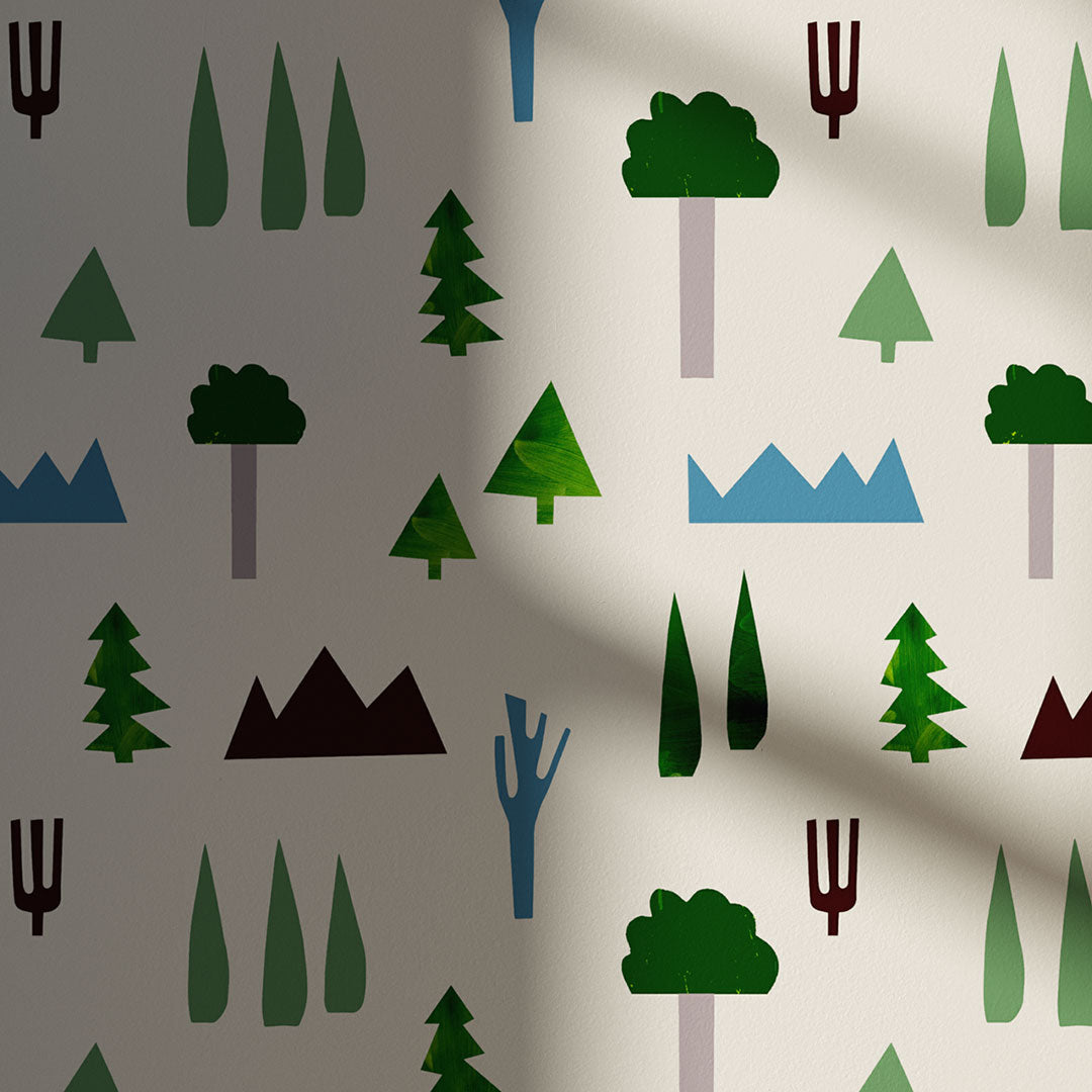 Feel the breeze in our forest nursery wallpaper, featuring a cream glade dotted with evergreen trees and mid blue mountain tops. Keep impatient little ones happy with Trees 01's engaging abstract design and quick to hang paste-the-wall application. Available as a paste-the-wall sample and roll.
