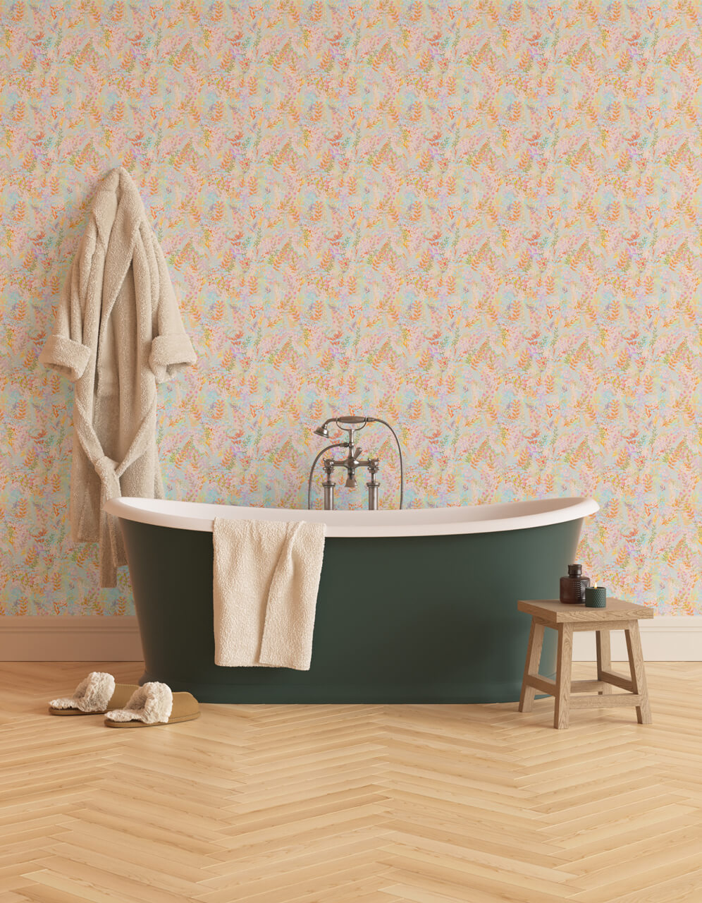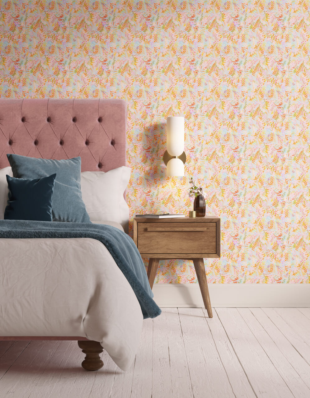 Bursting with on-trend colors, this pretty pink floral wallpaper is a wonderful mix of fantastical and feminine. Use it to add spring vibes and a touch of frivolity to a nursery or a guest bathroom.